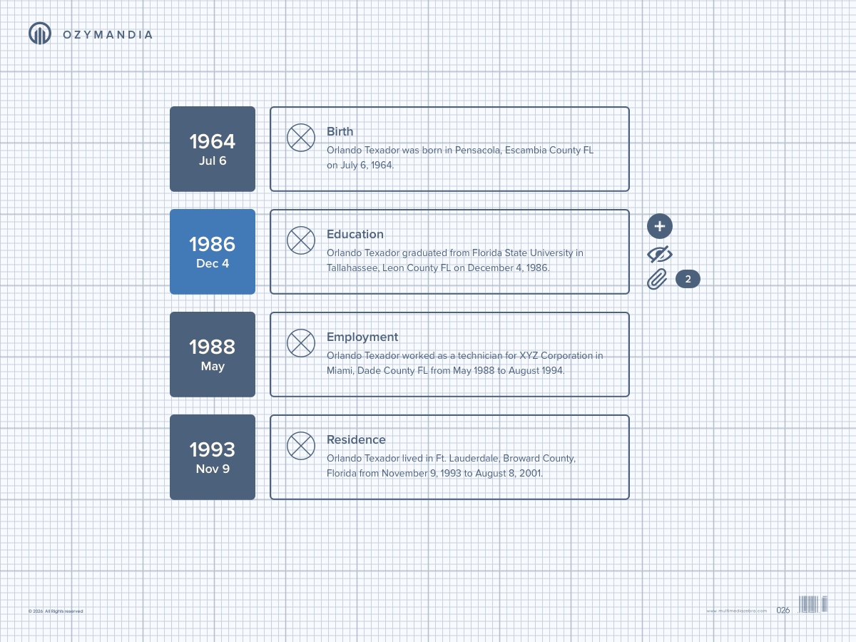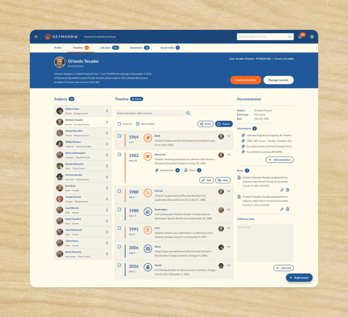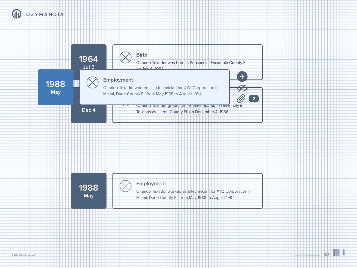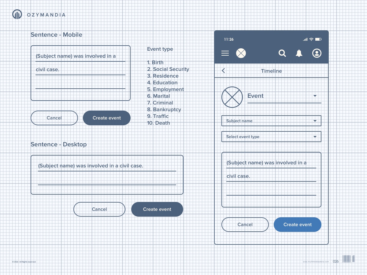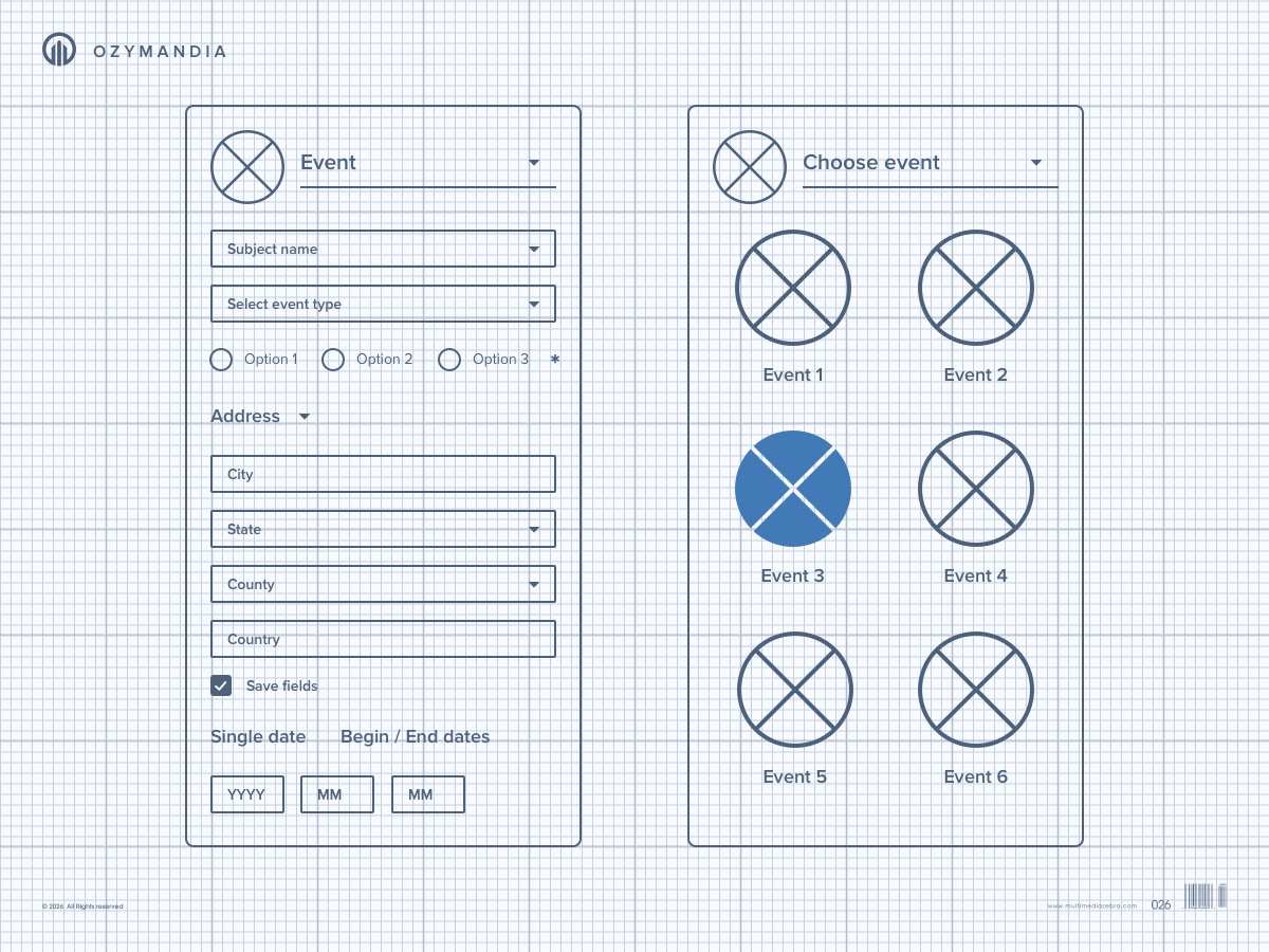 Ozymandia Timeline application prototype is based on a project designed for Smith & Carson. For promotional use only.