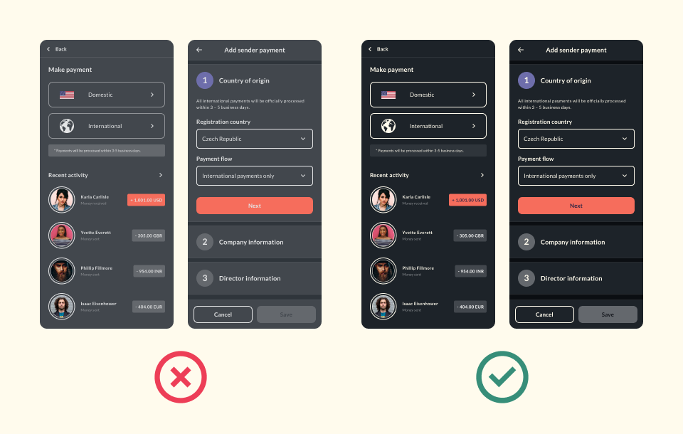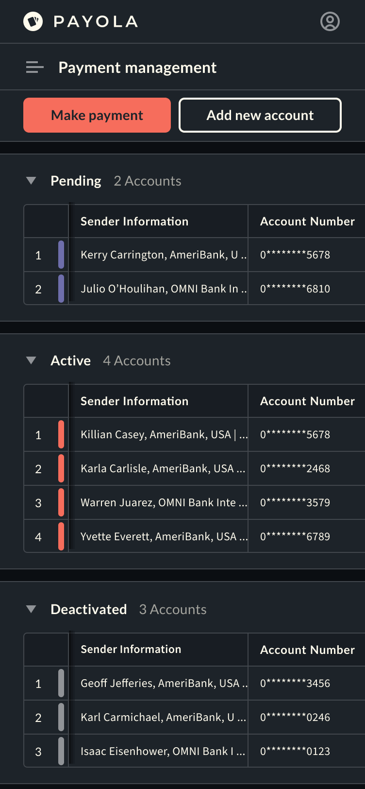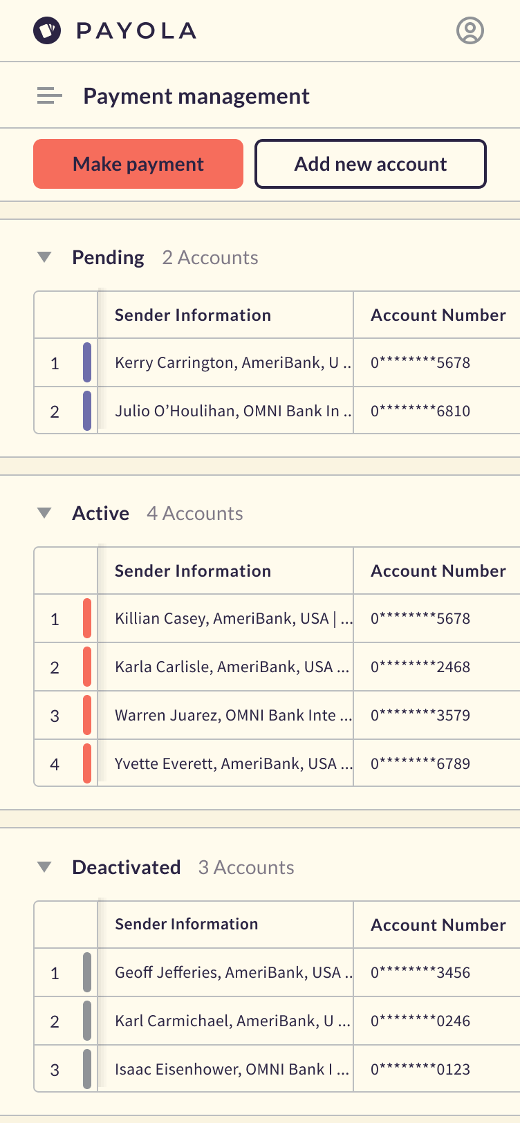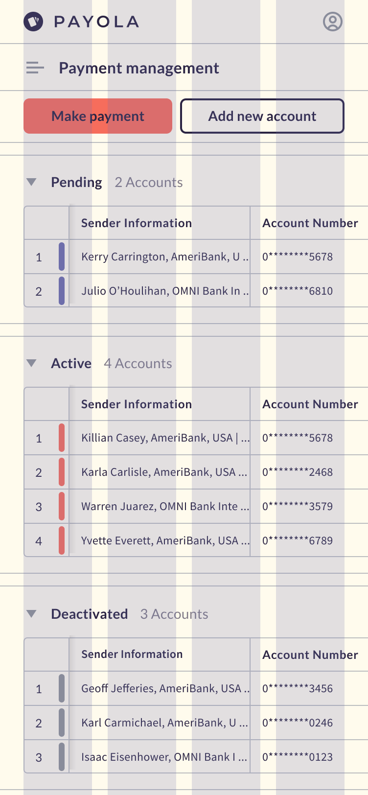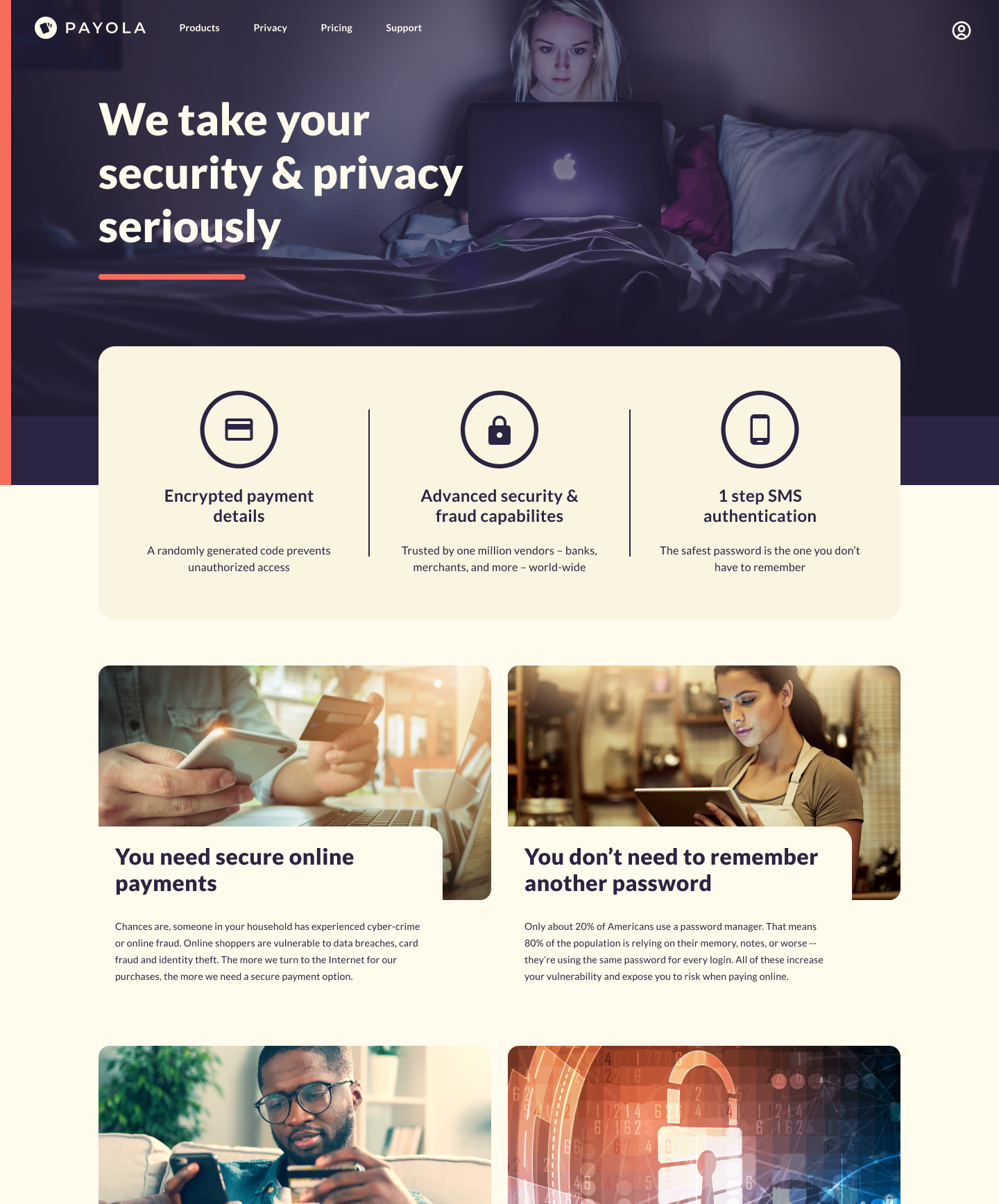 Since B2B payments often involve large payment amounts across different countries, our research indicated that emphasizing security would a priority for Payola to alleviate clients concerns of fraud and theft.